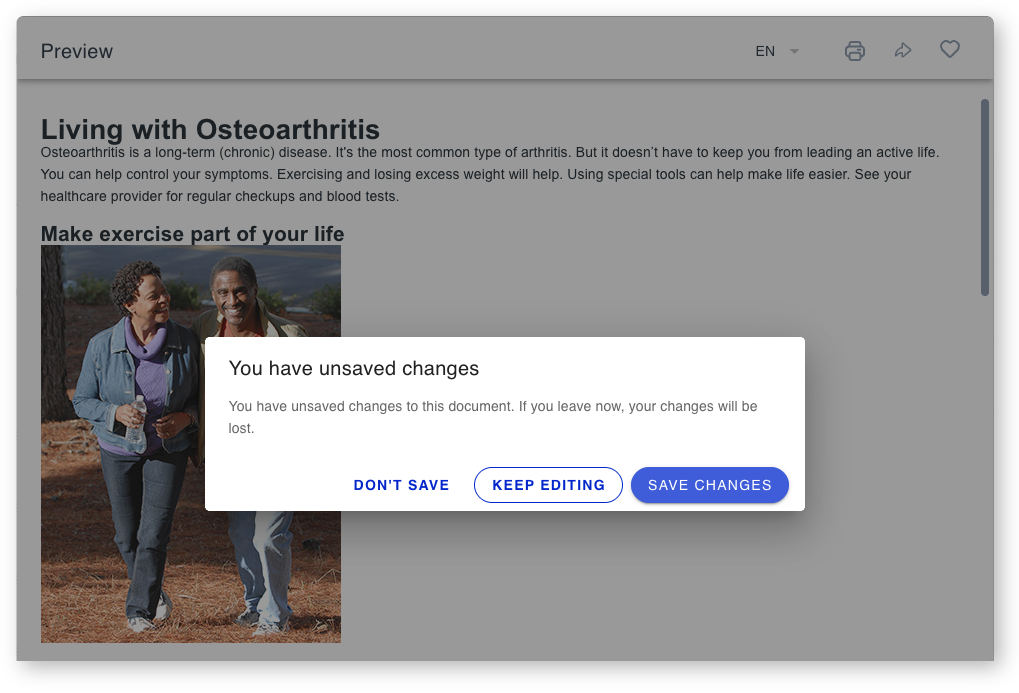 When editing patient education, you might leave without saving — which used to mean losing your work.
