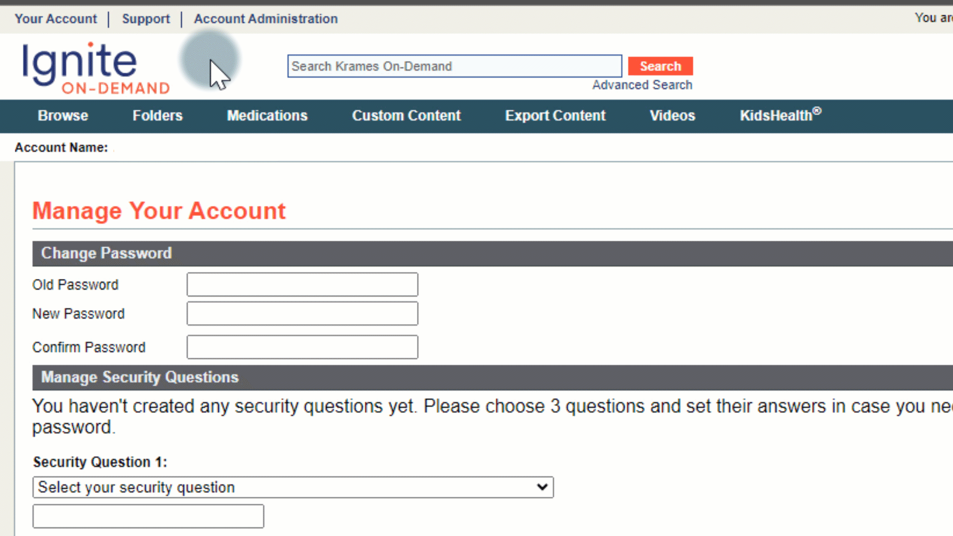When logging into www.kramesondemand.com, the Account Administration Page (Admin Page) should be the first thing the Account Manager sees. If not, simply click on "Account Administration" in the navigation bar at the top of the application.
