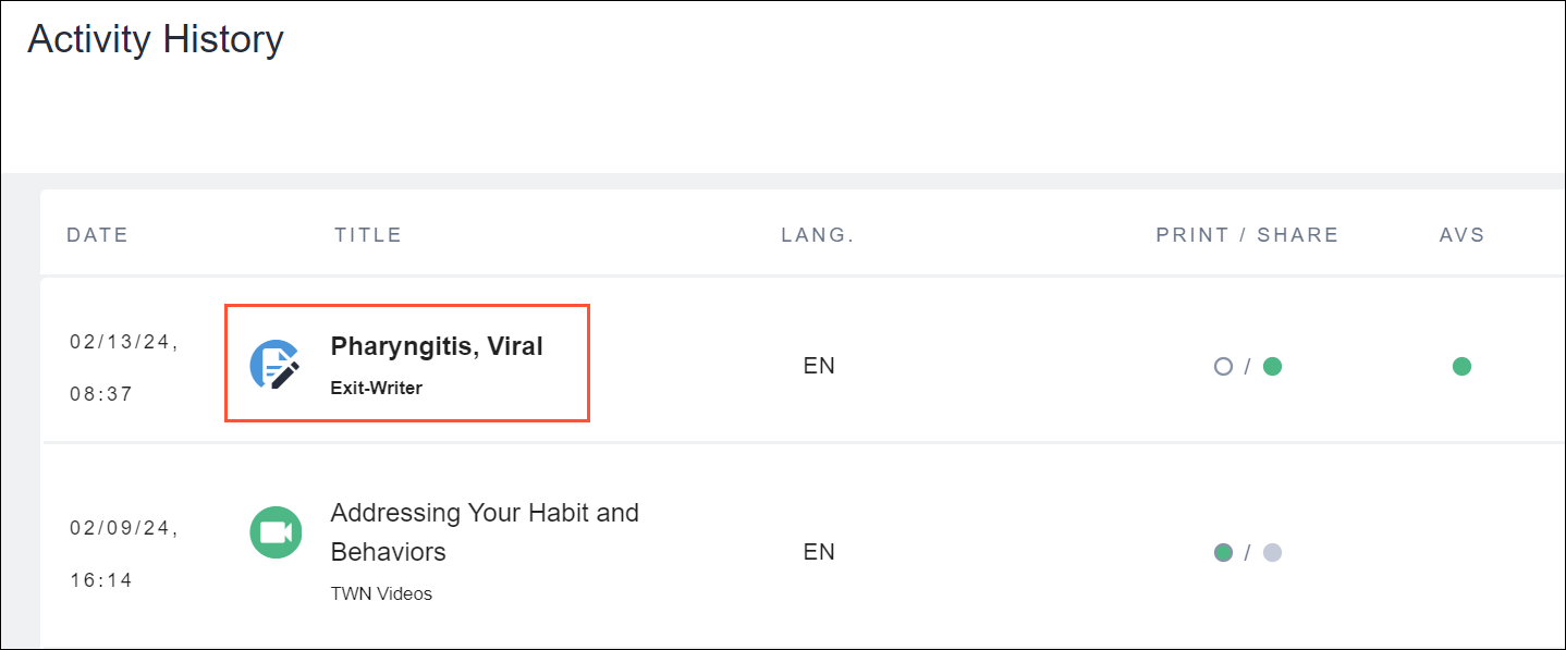 In Activity History, now you can view the actual education assigned to patients, not just the title and other high-level details. Even better, you’ll see exactly what was provided—including any edits made by the clinician specifically for the patient.