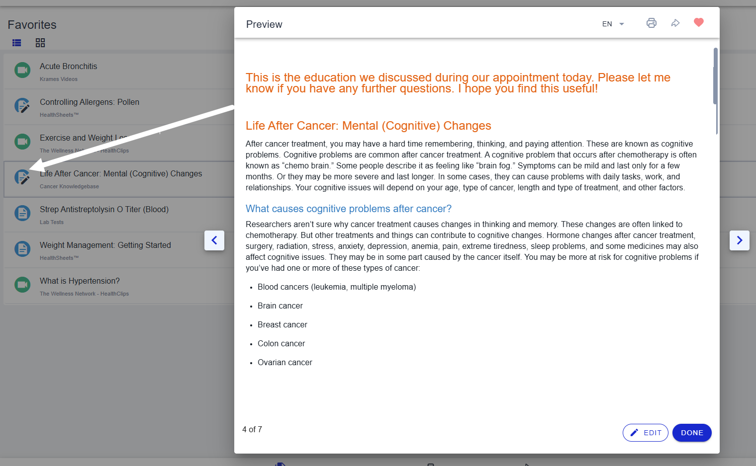 The in-line editor was not saving edits through the After-Visit Summary (AVS) or in the Activity History, even though the pencil icon indicated it was edited. We’ve resolved this issue so that any edits made, including those coming from your Favorites, are properly saved, displayed, and sent.