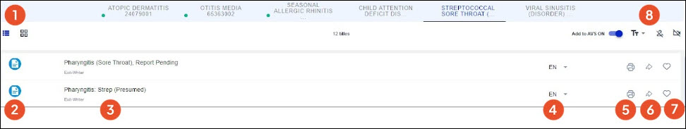 - Share: Shares the item to the AVS and MyChart